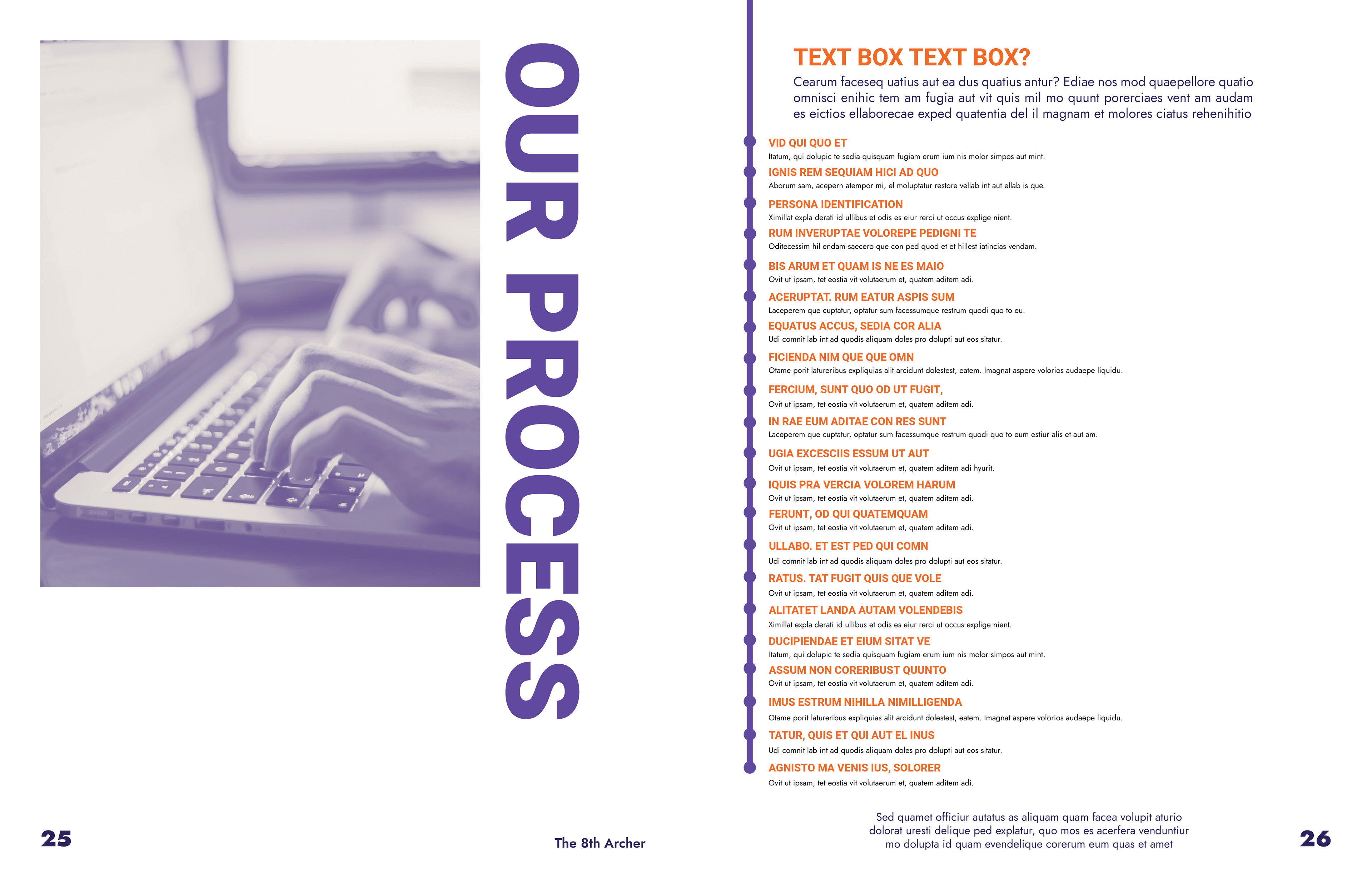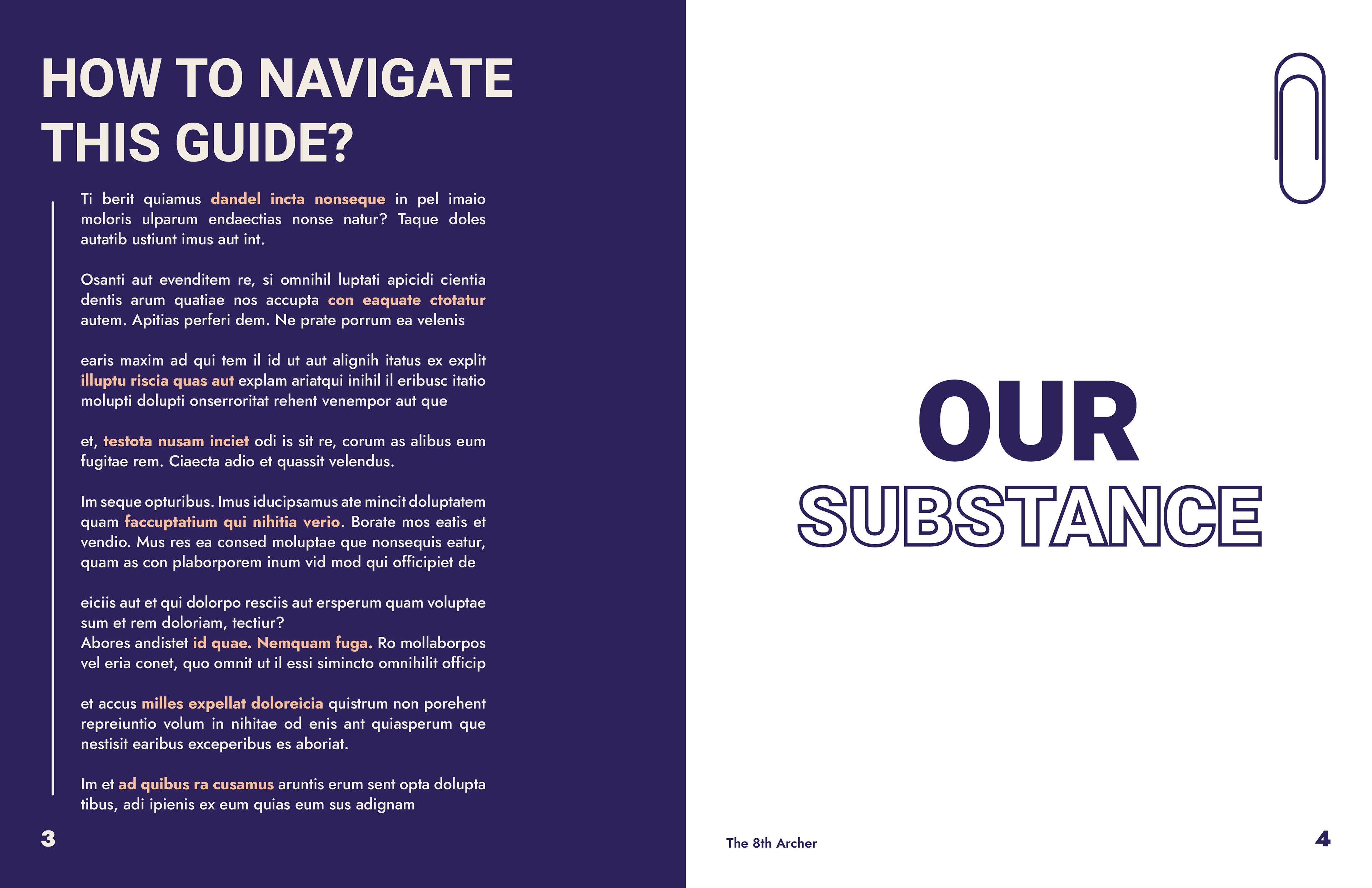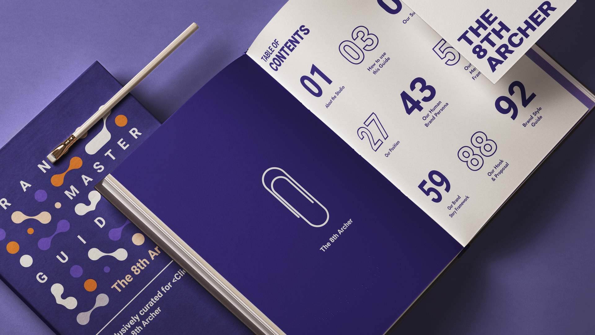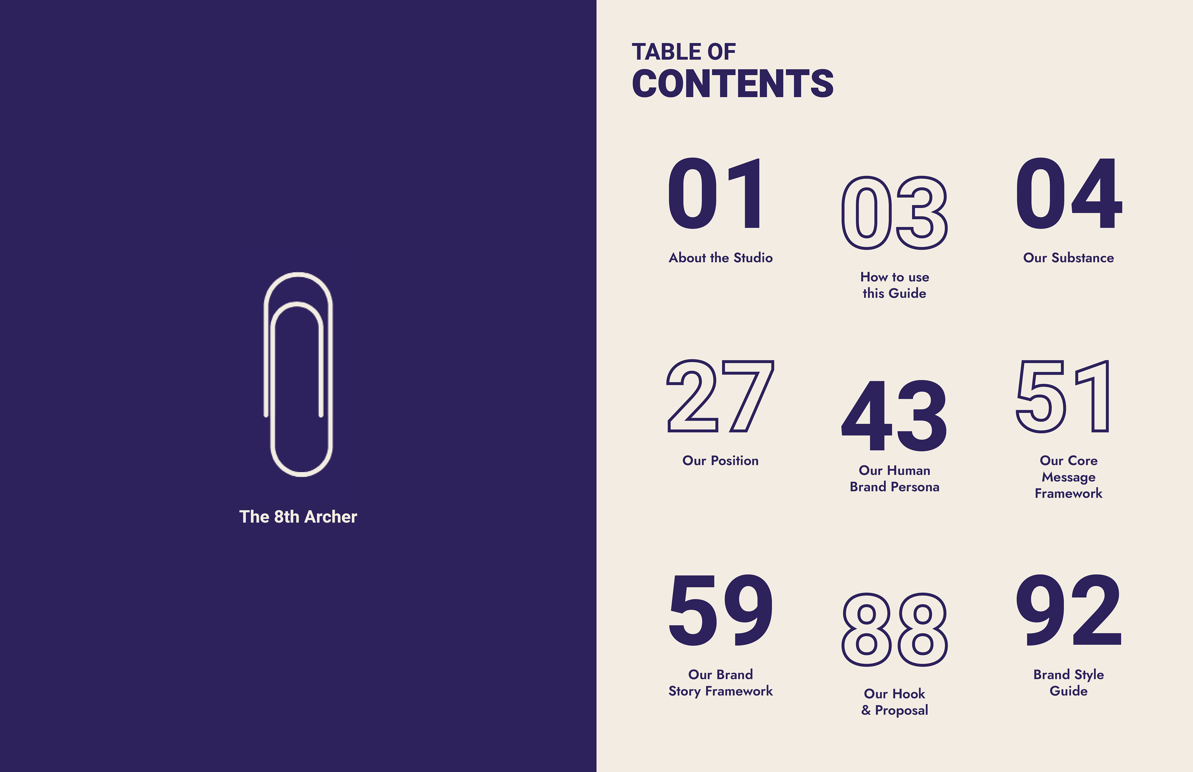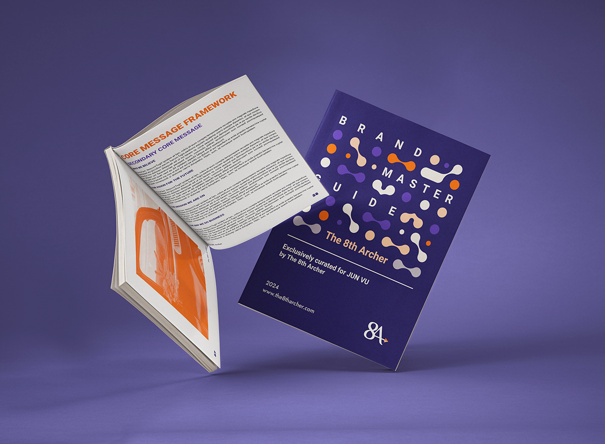 The 8th Archer Brand Book was designed by Jun Viet Bang Vu and is approximately 115 pages in total. This book has a modernized and minimalist design style, which is focused on typography and its contents